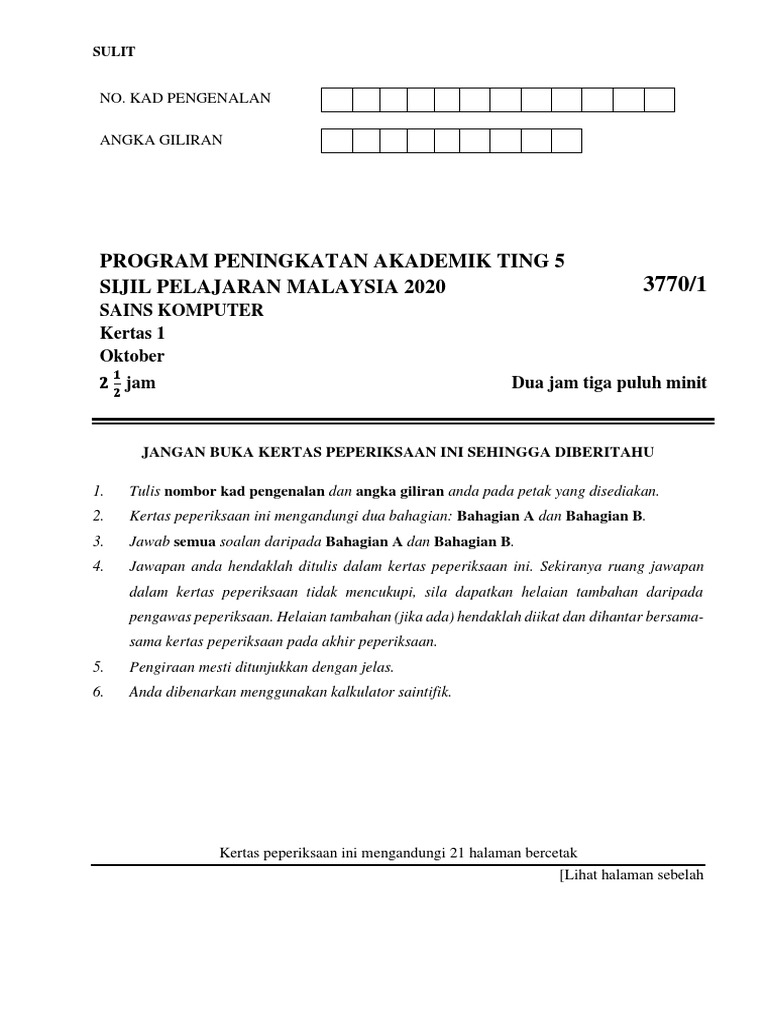 Sains Komputer Percubaan Spm 2020 Ns Pdf