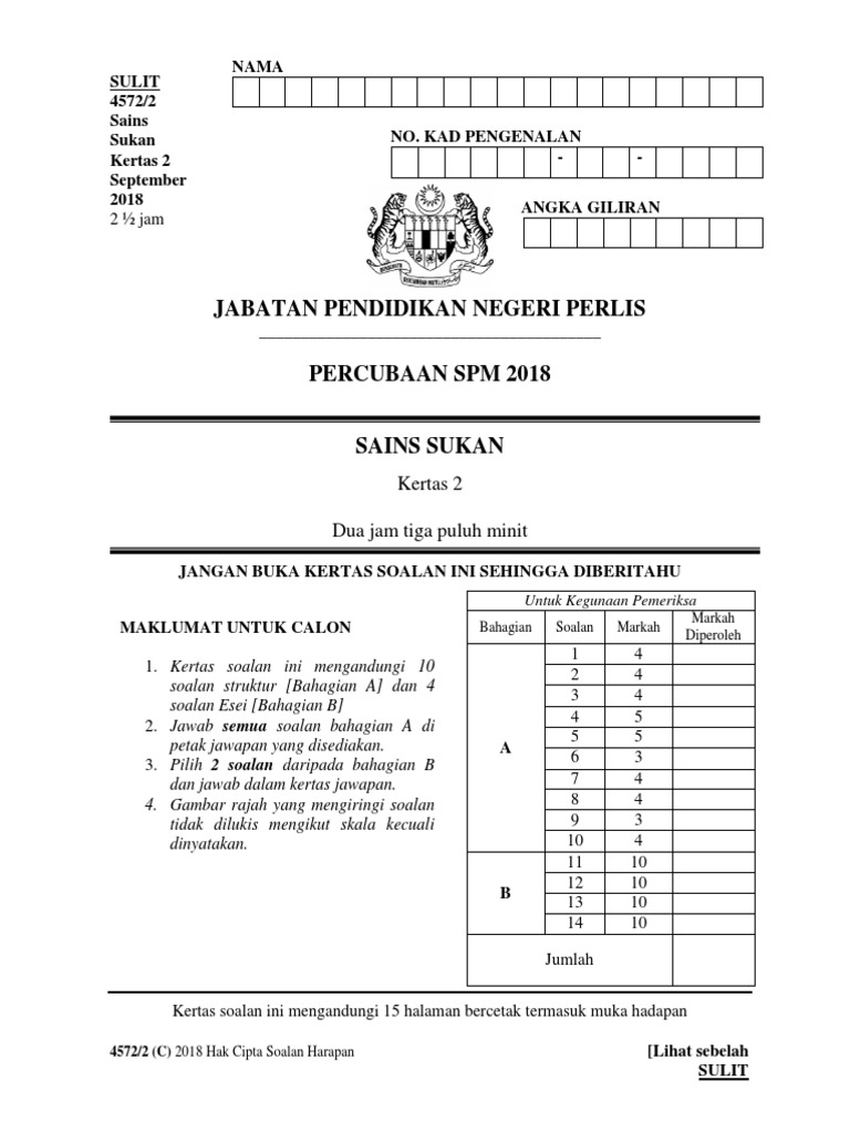Soalan Percubaan Sains Sukan Spm 2018 Skema Jawapan Peperiksaan